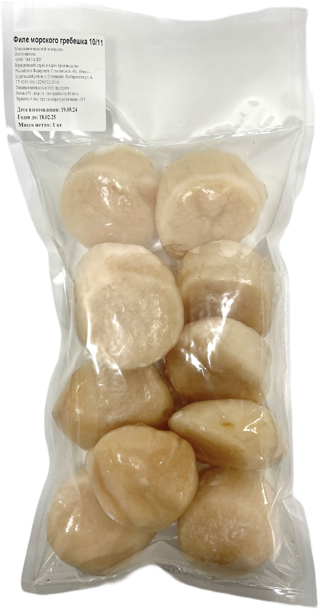 морской гребешок филе, вода (защитная глазурь)